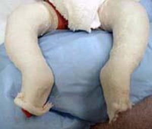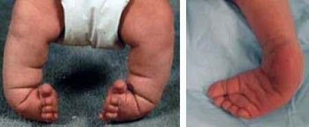 The affected foot appears to have been rotated internally at the ankle.